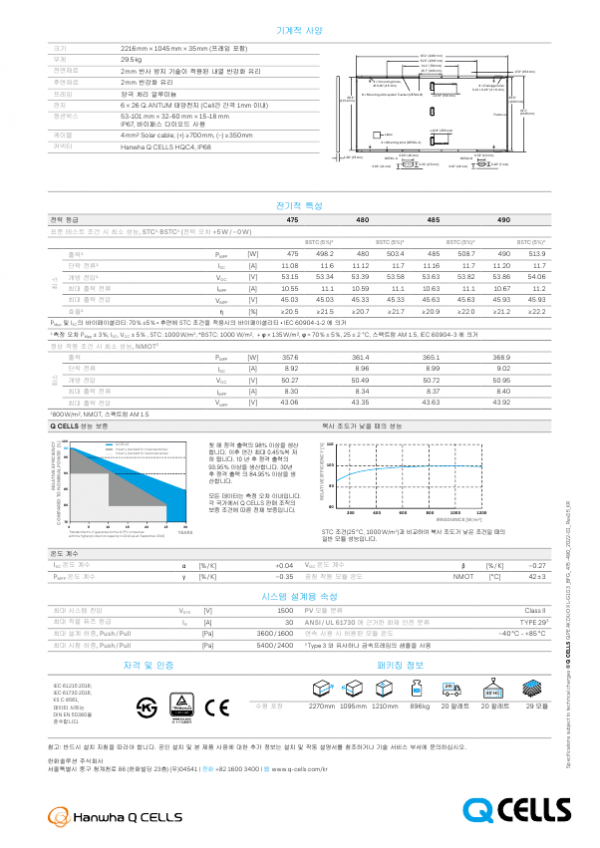 한화큐셀 태양광 모듈 (DUO시리즈 475W-490W)