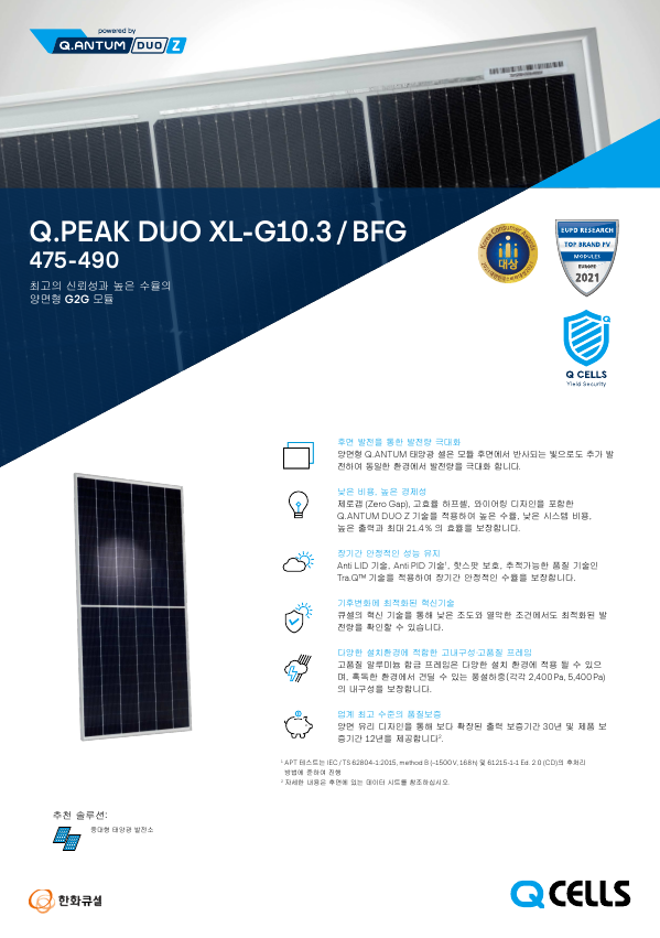 한화큐셀 태양광 모듈 (DUO시리즈 475W-490W)